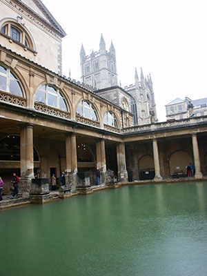 昔から温泉保養地と知られるバースはプリストル・エイヴォン川のほとりにあり、イングランドでも1,2を争う人気の観光都市です。バースは数々のローマ時代の遺跡をはじめ、ジョージ王朝時代の雰囲気を美しく保存しているこの街は、ユネスコの世界遺産にも登録されています。 ローマ時代の鉛でおおわれたままのローマ大浴場は46.5℃のお湯を1日25万ガロン湧出する 湯元から湯を供給されている薄緑色に見えるローマ大浴場を見、まだ盛んに湧き流れる湯元を見ていると入浴やサウナを楽しむローマ人の姿を見るような思いがします。 18世紀に、バースは儀典長ボー・ナlチシュの主導のより新しい町作を目指した。郵便事業「で成功したラルフ・アレンーカスの援助を得てジョン・ウッド父子が設計し、円形広場ザ・サ-カス、ヴィクトリア公園にある半月形連続住宅ロイヤル・クレセントなどは特に有名な建築です。 ロ-マ大浴場を出てアベイ教会の横を抜けてエイヴォン川の岸辺に出ます。、川の上手のバルトニ橋が見え、その手前に堰があり、餌さを求めて鳥がやってきます。バルトニー橋は、イタリアのフィレンつェのアルニ川に架かるヴェッキオ橋に似ています。バースの町は建築の面でも調和のとれた特徴のある美しい町です。ぜひイギリスに行く機会があったらバースまで足を伸ばしてください。